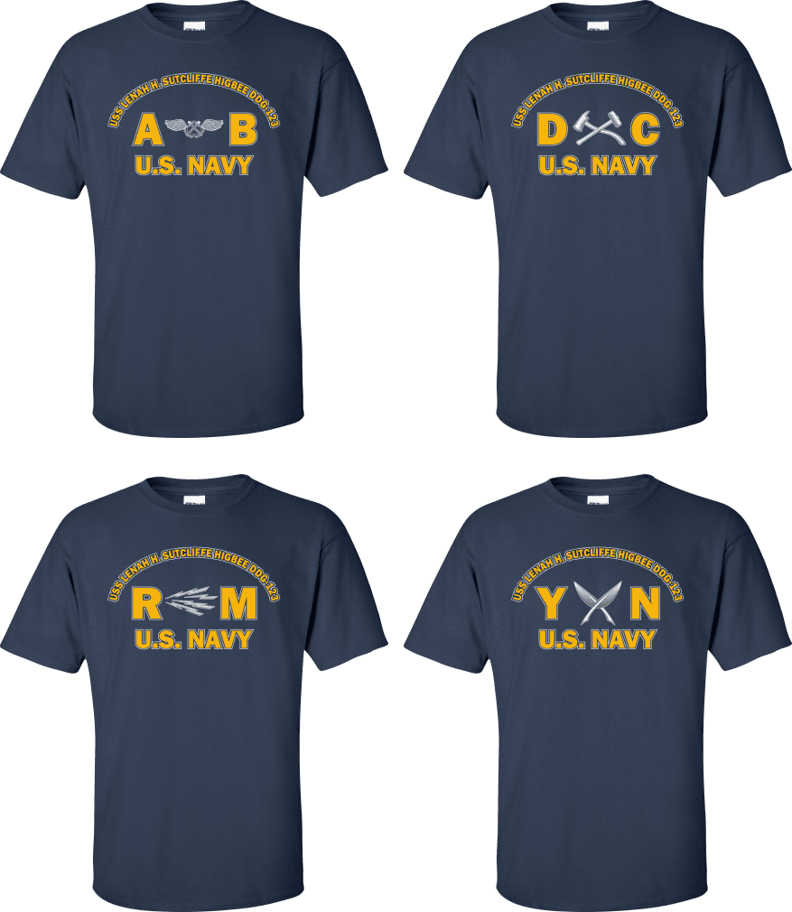 Due to disruptions in supply chains, this design will be embroidered on a Champion, Gildan, Jerzees or comparable brand.Proudly display your ship and rate with our top quality USS LENAH H. SUTCLIFFE HIGBEE DDG-123 Rates t-shirts, sweatshirts, and hoodies. These fine U.S. Navy apparel items will make you the envy of your veteran buddies, or will make a fine gift! Our USS LENAH H. SUTCLIFFE HIGBEE DDG-123 shirts are proudly printed in the USA!