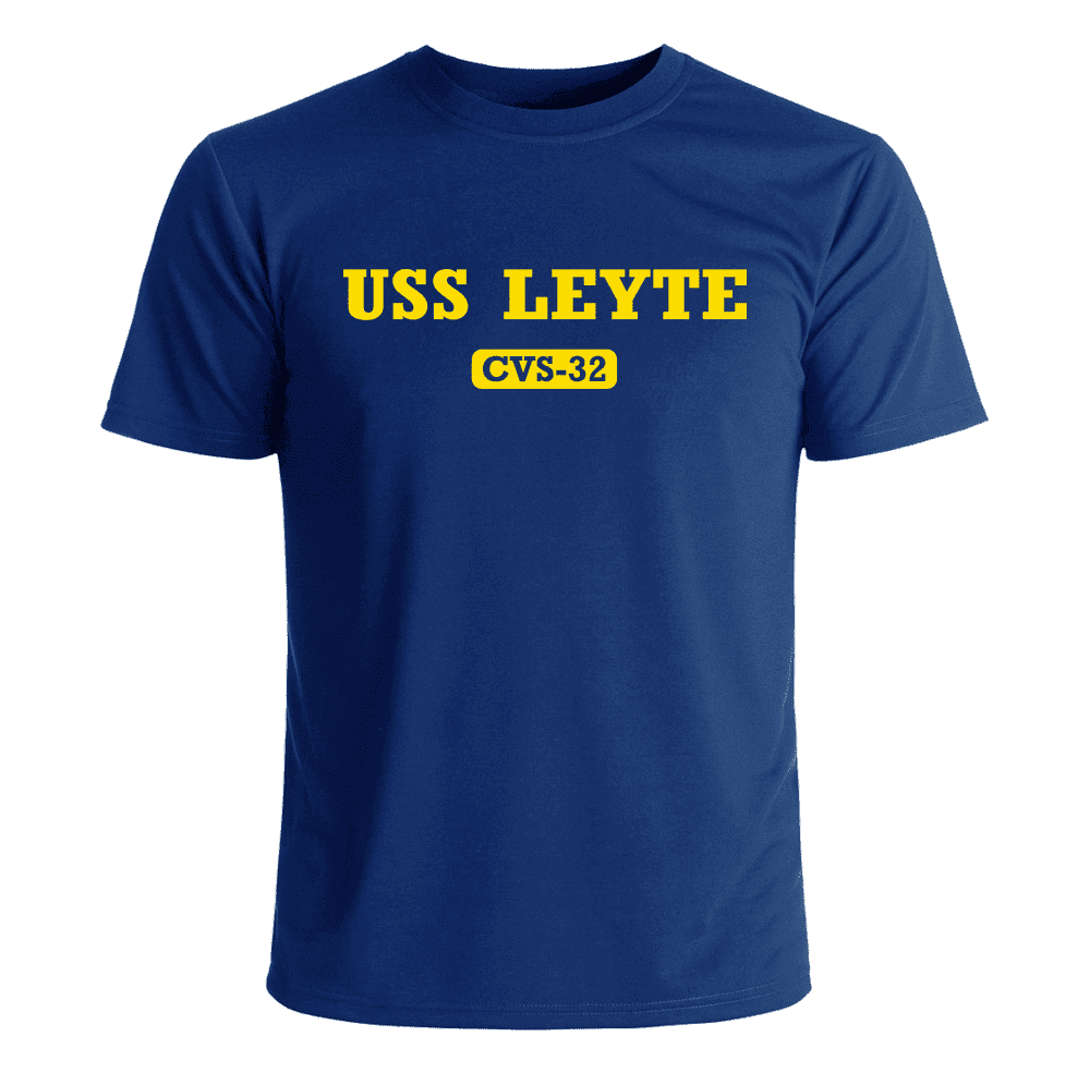 Please enjoy this US Navy officially licensed USS Leyte CVS-32 T-Shirt. It is a 100% cotton shirt and is available in S, M, L, XL, 2X, 3X and 4X sizes.A percentage of the sale of each MilitaryBest item is forwarded to the licensing departments of each respective branch of service in support of the MWR (Morale, Welfare, & Recreation) program. These payments are made by either ALL4U LLC or the wholesaler from where the item originated. Our team thanks you for your service and your support of these programs.
