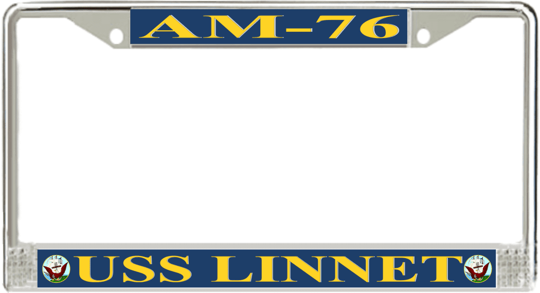USS Linnet AM-76 License Plate FrameThis USS Linnet AM-76 License Plate Frame is proudly made in the USA at our facilities in Scottsboro, Alabama. Each of our MilitaryBest U.S. Navy Frames feature top and bottom Poly Coated Aluminum strips that are printed using sublimation which gives these quality automobile military frames a beautiful high gloss finish.