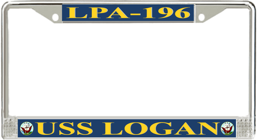 USS Logan LPA-196 License Plate frameThis USS Logan LPA-196 License Plate frame is proudly made in the USA at our facilities in Scottsboro, Alabama. Each of our MilitaryBest U.S. Navy Frames feature top and bottom Poly Coated Aluminum strips that are printed using sublimation which gives these quality automobile military frames a beautiful high gloss finish.