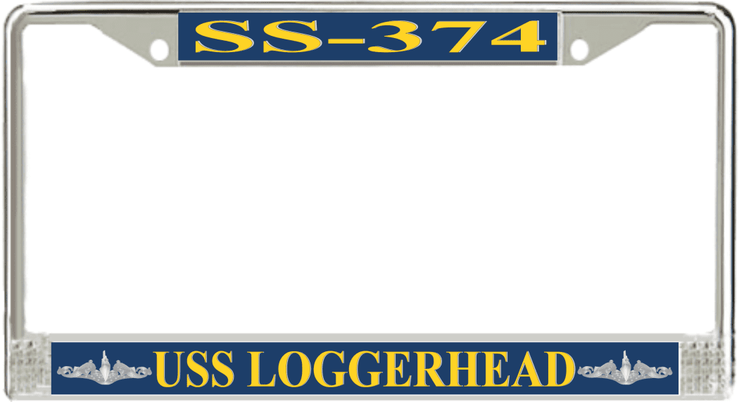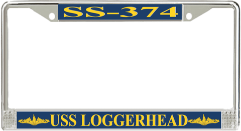 USS Loggerhead SS-374 License Plate Frame This USS Loggerhead SS-374 License Plate Frame is proudly made in the USA at our facilities in Scottsboro, Alabama. Each Frame features top and bottom sublimated design strips that are poly coated for a protective gloss finish. Please check your state and local regulations for compatibility of these frames for use on your vehicle.