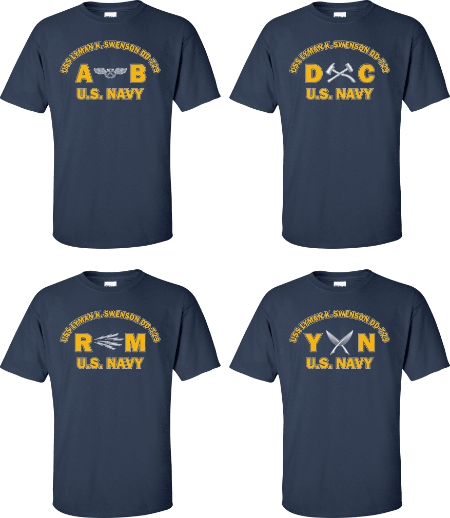Due to disruptions in supply chains, this design will be embroidered on a Champion, Gildan, Jerzees or comparable brand.Proudly display your ship and rate with our top quality USS LYMAN K. SWENSON DD-729 Rates t-shirts, sweatshirts, and hoodies. These fine U.S. Navy apparel items will make you the envy of your veteran buddies, or will make a fine gift! Our USS LYMAN K. SWENSON DD-729 shirts are proudly printed in the USA!