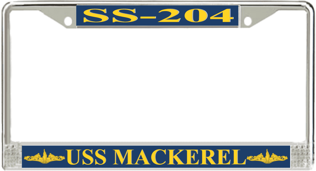 USS Mackerel SS-204 License Plate Frame This USS Mackerel SS-204 License Plate Frame is proudly made in the USA at our facilities in Scottsboro, Alabama. Each Frame features top and bottom sublimated design strips that are poly coated for a protective gloss finish. Please check your state and local regulations for compatibility of these frames for use on your vehicle.