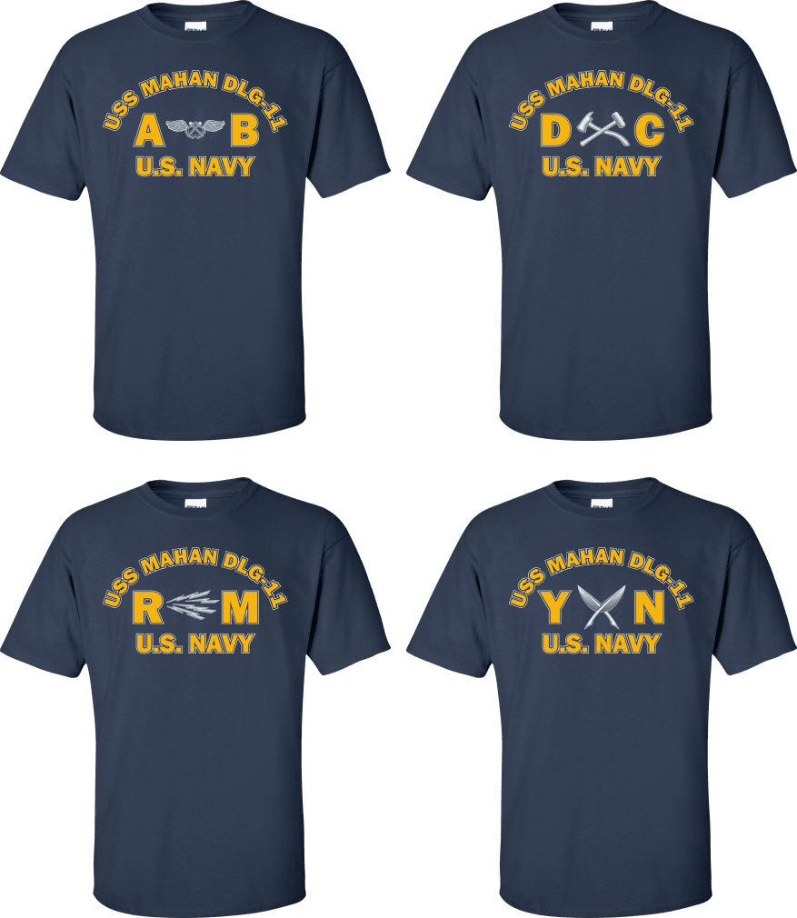 Due to disruptions in supply chains, this design will be embroidered on a Champion, Gildan, Jerzees or comparable brand.Proudly display your ship and rate with our top quality USS MAHAN DLG-11 Rates t-shirts, sweatshirts, and hoodies. These fine U.S. Navy apparel items will make you the envy of your veteran buddies, or will make a fine gift! Our USS MAHAN DLG-11 shirts are proudly printed in the USA!