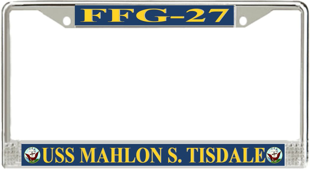 USS Mahlon S. Tisdale FFG-27 License Plate FrameThis USS Mahlon S. Tisdale FFG-27 License Plate Frame is proudly made in the USA at our facilities in Scottsboro, Alabama. Each of our MilitaryBest U.S. Navy Frames feature top and bottom Poly Coated Aluminum strips that are printed using sublimation which gives these quality automobile military frames a beautiful high gloss finish.