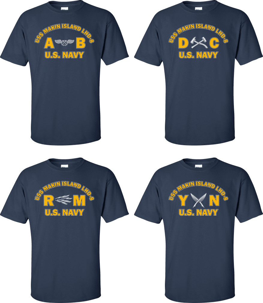Due to disruptions in supply chains, this design will be embroidered on a Champion, Gildan, Jerzees or comparable brand.Proudly display your ship and rate with our top quality USS MAKIN ISLAND LHD-8 Rates t-shirts, sweatshirts, and hoodies. These fine U.S. Navy apparel items will make you the envy of your veteran buddies, or will make a fine gift! Our USS MAKIN ISLAND LHD-8 shirts are proudly printed in the USA!