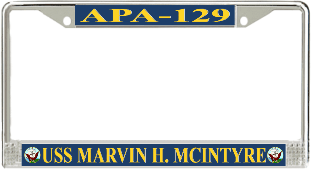 USS Marvin H. McIntyre APA-129 License Plate FrameUSS Marvin H. McIntyre APA-129 License Plate FrameUSS Marvin H. McIntyre APA-129 License Plate Frame