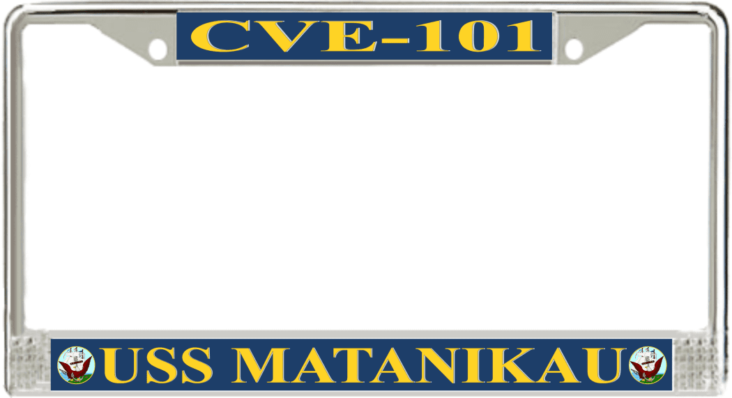 USS Matanikau CVE-101 License Plate Frame This USS Matanikau CVE-101 License Plate Frame is proudly made in the USA at our facilities in Scottsboro, Alabama. Each Frame features top and bottom sublimated design strips that are poly coated for a protective gloss finish.
