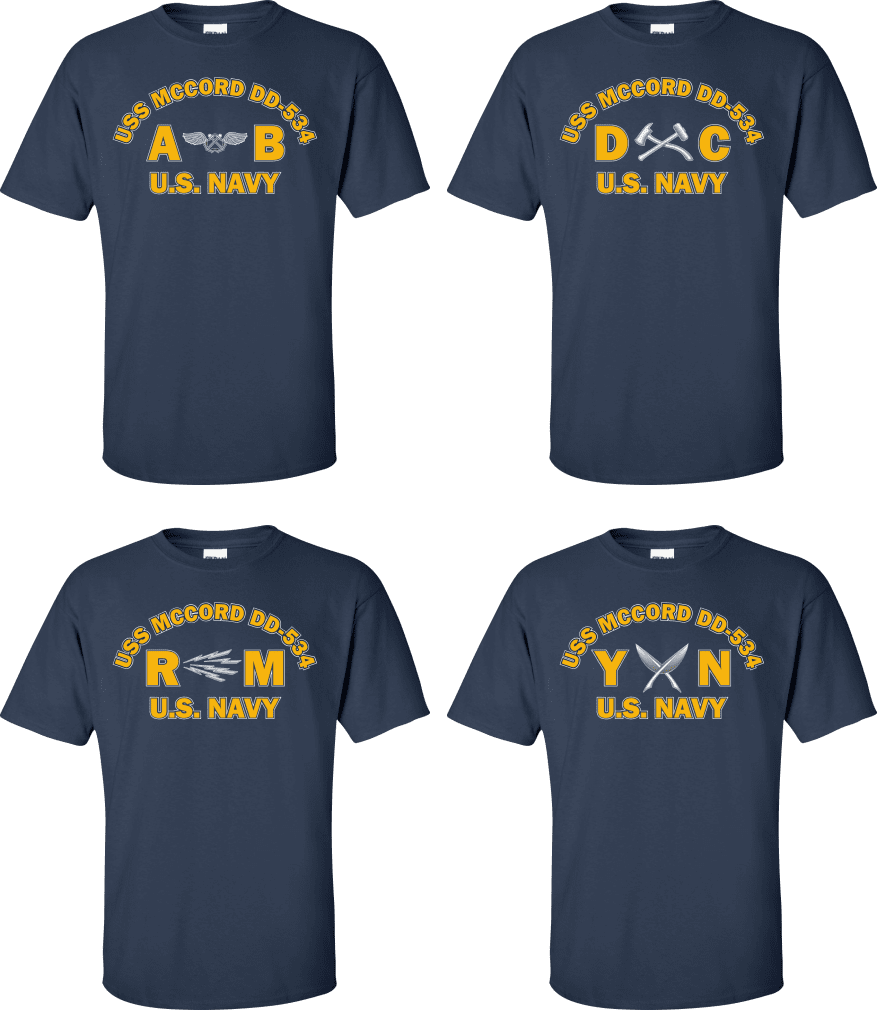 Due to disruptions in supply chains, this design will be embroidered on a Champion, Gildan, Jerzees or comparable brand.Proudly display your ship and rate with our top quality USS MCCORD DD-534 Rates t-shirts, sweatshirts, and hoodies. These fine U.S. Navy apparel items will make you the envy of your veteran buddies, or will make a fine gift! Our USS MCCORD DD-534 shirts are proudly printed in the USA!