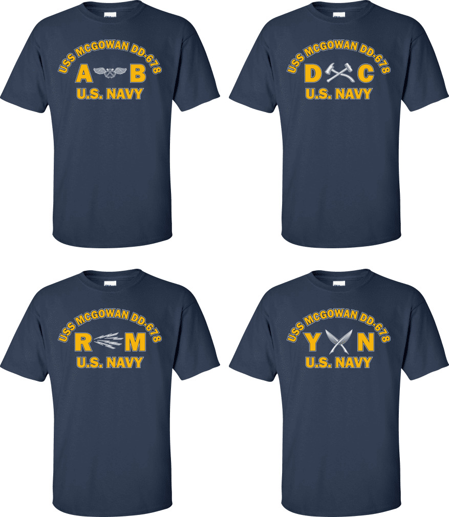 Due to disruptions in supply chains, this design will be embroidered on a Champion, Gildan, Jerzees or comparable brand.Proudly display your ship and rate with our top quality USS MCGOWAN DD-678 Rates t-shirts, sweatshirts, and hoodies. These fine U.S. Navy apparel items will make you the envy of your veteran buddies, or will make a fine gift! Our USS MCGOWAN DD-678 shirts are proudly printed in the USA!