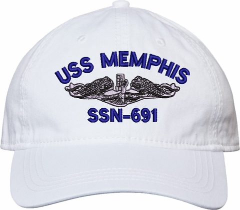 Show your Navy pride with this USS Memphis SSN-691 with Dolphins Unstructured Dad Cap from MilitaryBest. Crafted from 100% washed chino twill cotton, this six-panel, low-profile cap offers a relaxed and comfortable fit. Featuring high-quality embroidery done in our Scottsboro, Alabama facility, this cap is designed with a pre-curved visor and an adjustable tri-glide buckle closure for a perfect fit. Whether for everyday wear or as a meaningful gift, this cap is a great way to honor your own or a loved one's service.For caps ordered with custom embroidered personalized text please allow an additional 3 to 5 days production time. All custom back text will be embroidered in ALL CAPITAL LETTERS. Caps with back text or eggs are non-returnable unless there is a material defect in the cap.