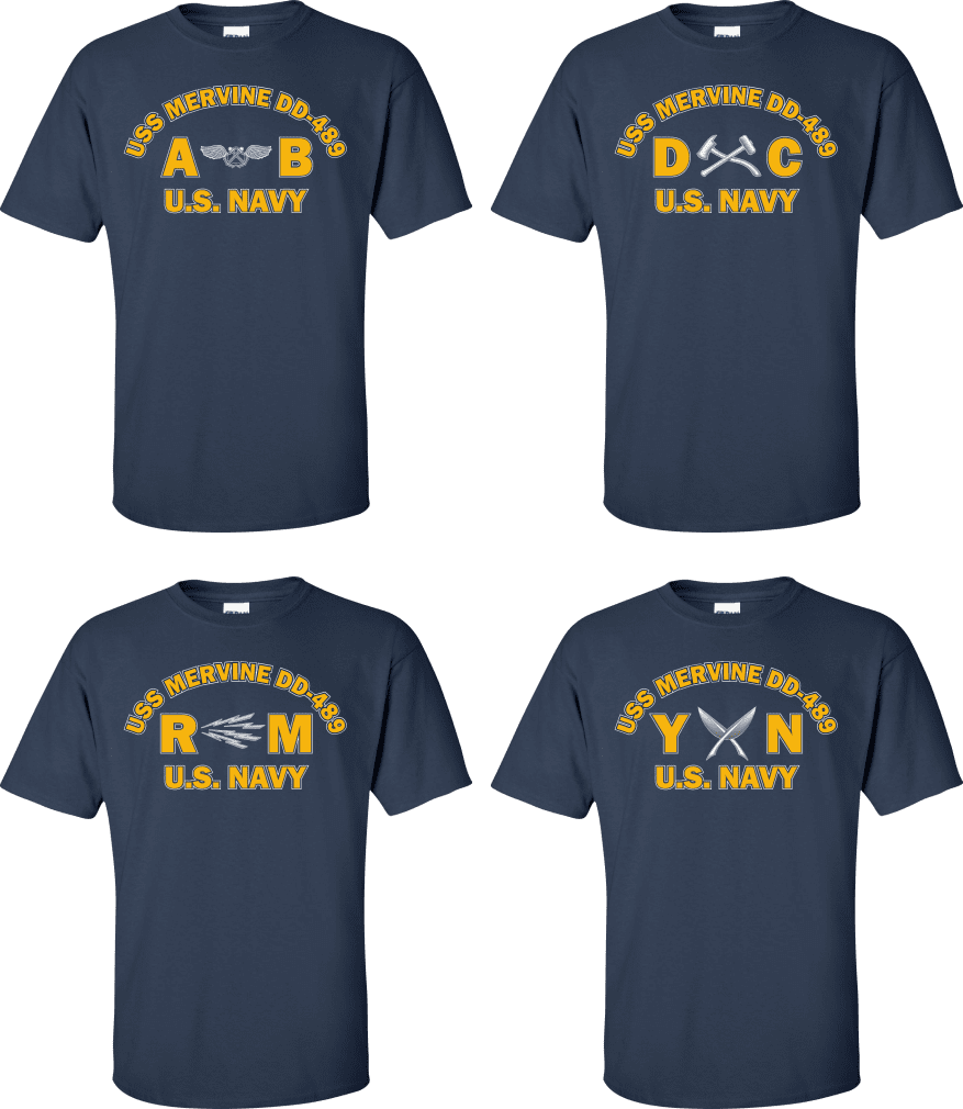 Due to disruptions in supply chains, this design will be embroidered on a Champion, Gildan, Jerzees or comparable brand.Proudly display your ship and rate with our top quality USS MERVINE DD-489 Rates t-shirts, sweatshirts, and hoodies. These fine U.S. Navy apparel items will make you the envy of your veteran buddies, or will make a fine gift! Our USS MERVINE DD-489 shirts are proudly printed in the USA!