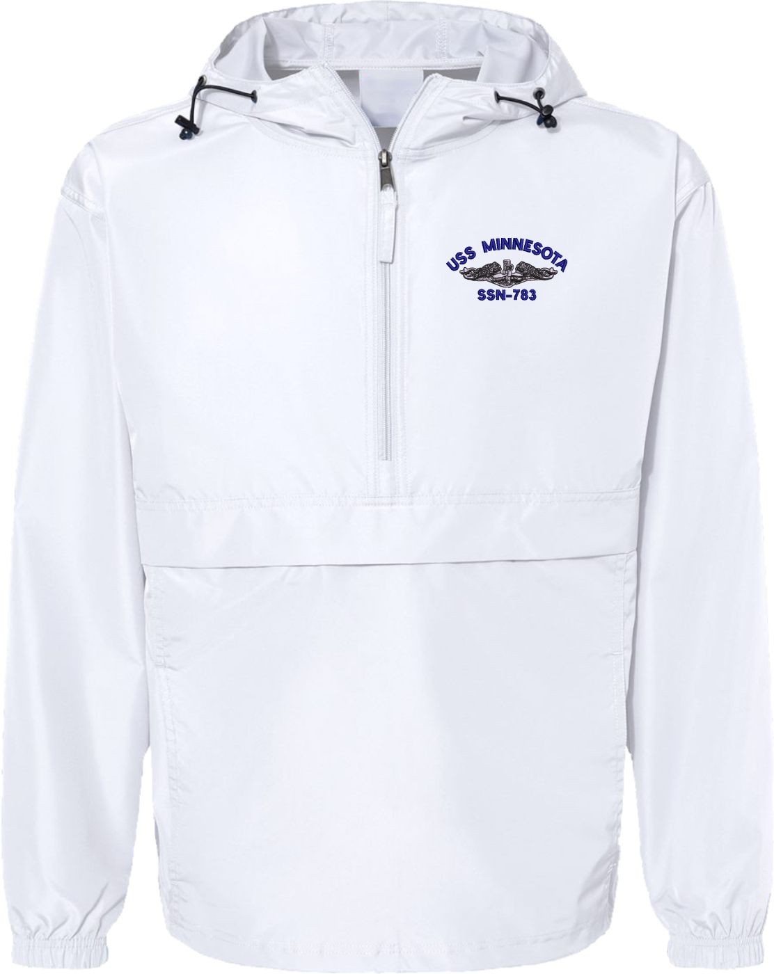MilitaryBest is proud to offer this quality USS Minnesota SSN-783 with Dolphins Hooded Windbreaker. Also known as an Anorak Jacket, this windbreaker is designed to keep wind and water out. With a design embroidered over the left chest, this windbreaker is embroidered to order at our facilities in Scottsboro, AL.. This windbreaker can be packed into the mesh lined pouch pocket for a more portable method of storage.- 100% Polyester