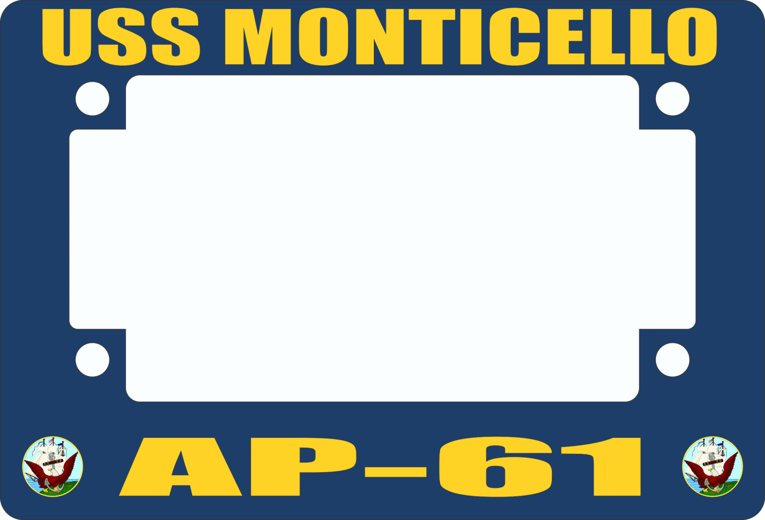 This USS Monticello AP-61 Motorcycle Frame is proudly made in the USA at our facilities in Scottsboro, Alabama. Each frame is made with fiberglass reinforced plastic and measures 5-1/16" x 7 7/16. This Motorcycle Frame would make a wonderful addition to your collection or a great gift. Its quality is guaranteed.