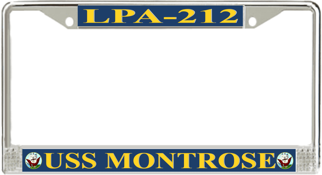 USS Montrose LPA-212 License Plate frameThis USS Montrose LPA-212 License Plate frame is proudly made in the USA at our facilities in Scottsboro, Alabama. Each of our MilitaryBest U.S. Navy Frames feature top and bottom Poly Coated Aluminum strips that are printed using sublimation which gives these quality automobile military frames a beautiful high gloss finish.