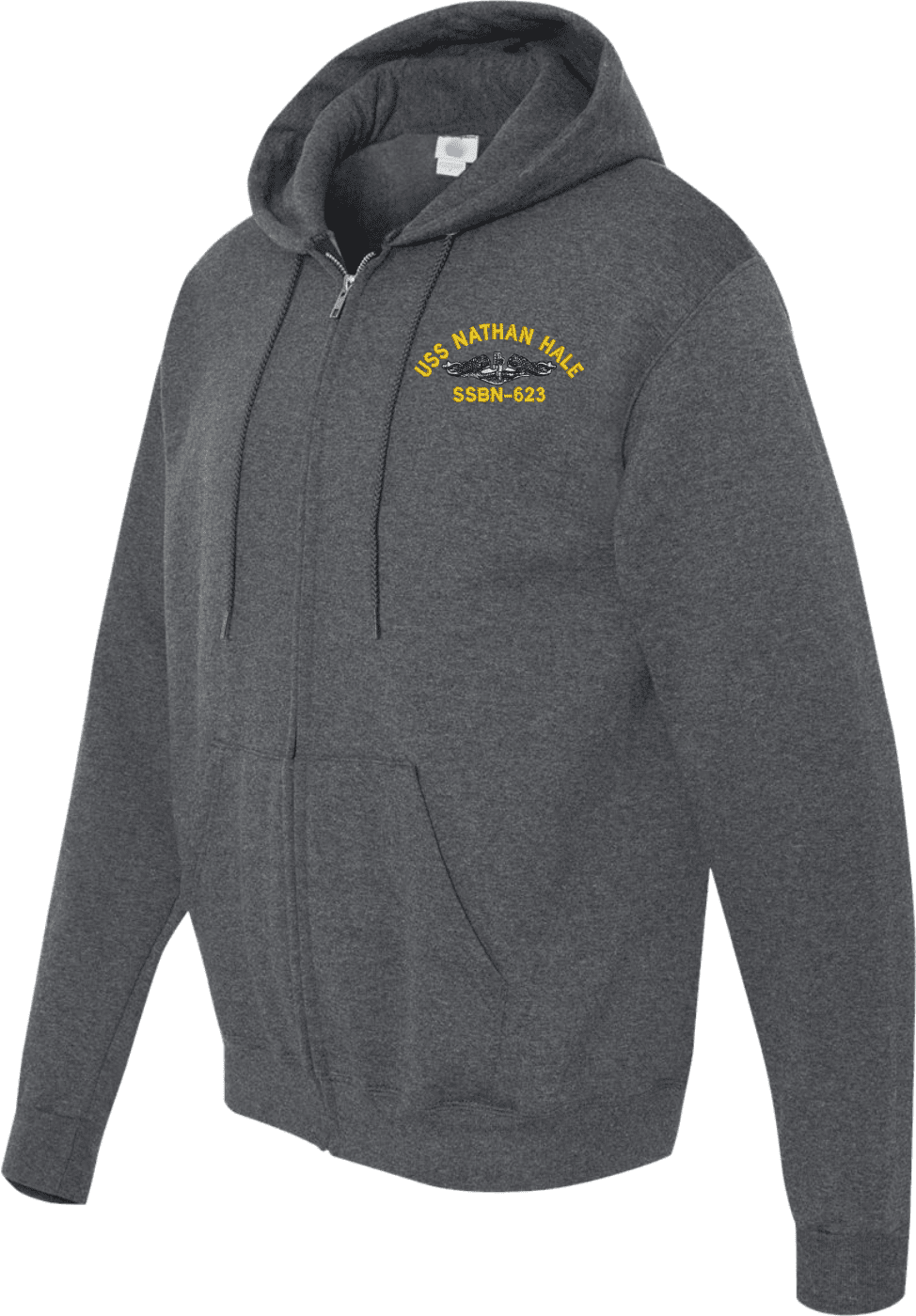 MilitaryBest has expanded its line of apparel with this custom embroidered USS Nathanael Green SSBN-636 with Dolphins Embroidered Zippered Hoodie. Each Hoodie is direct embroidered onto a Champion brand 9.5 oz 50/50 Cotton Poly blend. This will make an excellent addition to your wardrobe, or a great gift. Your satisfaction is Guaranteed! These quality zippered hoodies are proudly embroidered at our facilities in Scottsboro, AL. Support the Army MWR program by purchasing only from Licensed Vendors.