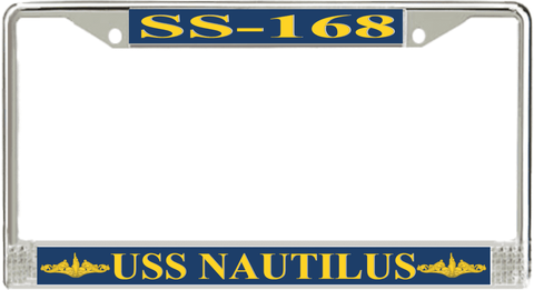 USS Nautilus SS-168 License Plate Frame This USS Nautilus SS-168 License Plate Frame is proudly made in the USA at our facilities in Scottsboro, Alabama. Each Frame features top and bottom sublimated design strips that are poly coated for a protective gloss finish. Please check your state and local regulations for compatibility of these frames for use on your vehicle.