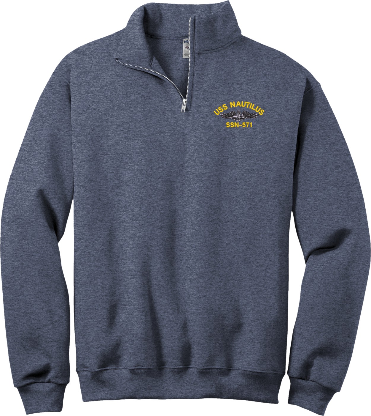MilitaryBest is proud to offer this USS Nautilus SSN-571 with Dolphins Embroidered Quarter-Zip Pullover. This quality shirt is embroidered by our MilitaryBest team in Northeast Alabama.PRODUCT FEATURES
