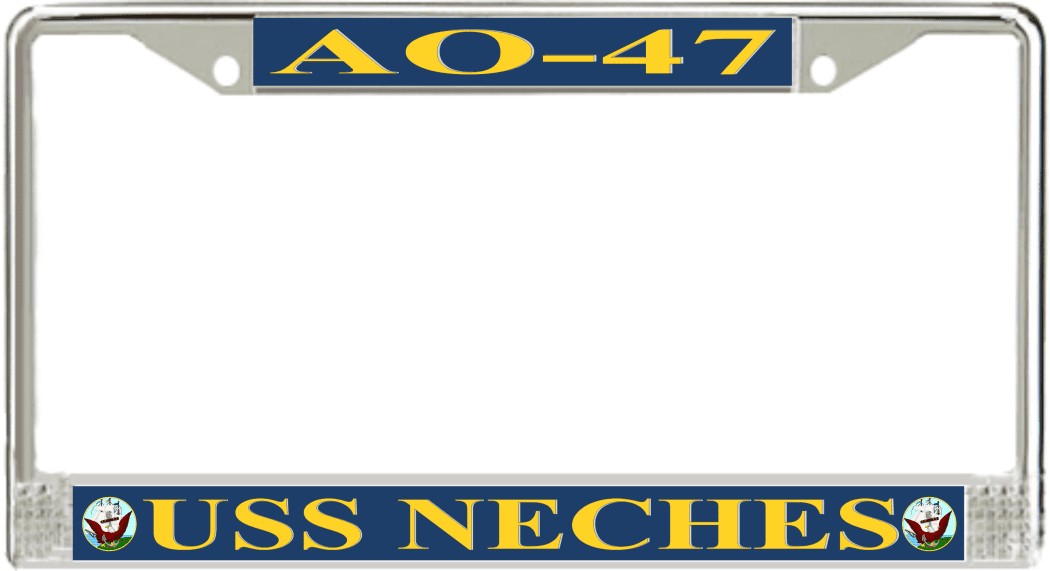 USS Neches AO-47 License Plate FrameThis USS Neches AO-47 License Plate Frame is proudly made in the USA at our facilities in Scottsboro, Alabama. Each of our MilitaryBest U.S. Navy Frames feature top and bottom Poly Coated Aluminum strips that are printed using sublimation which gives these quality automobile military frames a beautiful high gloss finish.