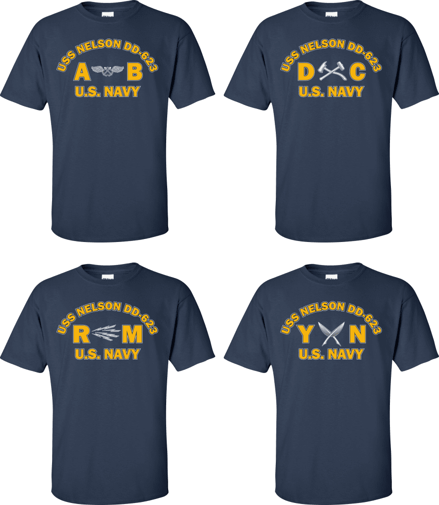Due to disruptions in supply chains, this design will be embroidered on a Champion, Gildan, Jerzees or comparable brand.Proudly display your ship and rate with our top quality USS NELSON DD-623 Rates t-shirts, sweatshirts, and hoodies. These fine U.S. Navy apparel items will make you the envy of your veteran buddies, or will make a fine gift! Our USS NELSON DD-623 shirts are proudly printed in the USA!