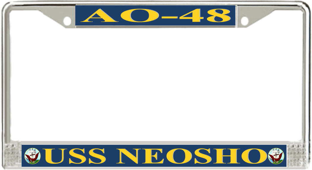 USS Neosho AO-48 License Plate FrameThis USS Neosho AO-48 License Plate Frame is proudly made in the USA at our facilities in Scottsboro, Alabama. Each of our MilitaryBest U.S. Navy Frames feature top and bottom Poly Coated Aluminum strips that are printed using sublimation which gives these quality automobile military frames a beautiful high gloss finish.