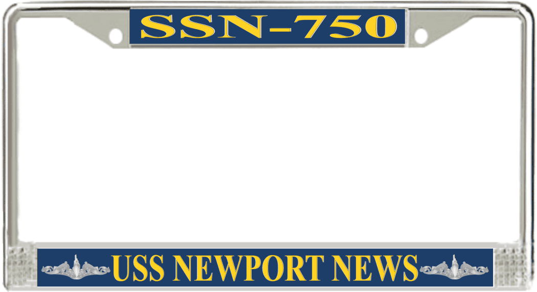 USS Newport News SSN-750 License Plate Frame This USS Newport News SSN-750 License Plate Frame is proudly made in the USA at our facilities in Scottsboro, Alabama. Each Frame features top and bottom sublimated design strips that are poly coated for a protective gloss finish. Please check your state and local regulations for compatibility of these frames for use on your vehicle.