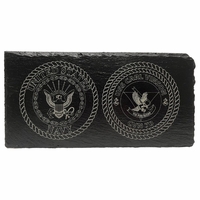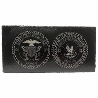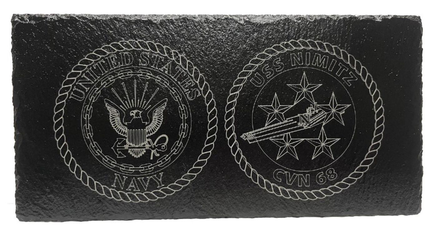 We are proud to offer this laser engraved slate plaque. This USS Nimitz Enlisted Plaque is engraved on a 12 x 6 inch piece of slate that offers a rustic and classic way to display on your desktop or book shelf. All plaques come with a black metal three leg stand. This plaque is Offically Licensed product by the Navy and made in the USA.