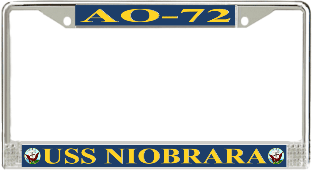 USS Niobrara AO-72 License Plate FrameThis USS Niobrara AO-72 License Plate Frame is proudly made in the USA at our facilities in Scottsboro, Alabama. Each of our MilitaryBest U.S. Navy Frames feature top and bottom Poly Coated Aluminum strips that are printed using sublimation which gives these quality automobile military frames a beautiful high gloss finish.
