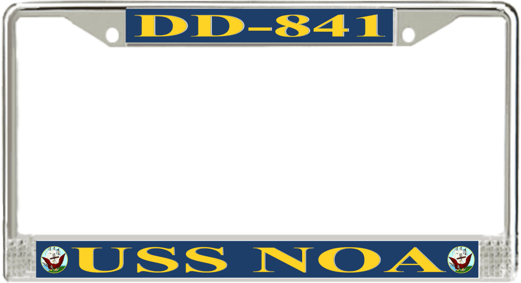 USS Noa DD-841 License Plate FrameThis USS Noa DD-841 License Plate Frame is proudly made in the USA at our facilities in Scottsboro, Alabama. Each of our MilitaryBest U.S. Navy Frames feature top and bottom Poly Coated Aluminum strips that are printed using sublimation which gives these quality automobile military frames a beautiful high gloss finish.
