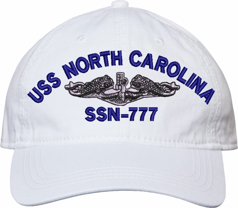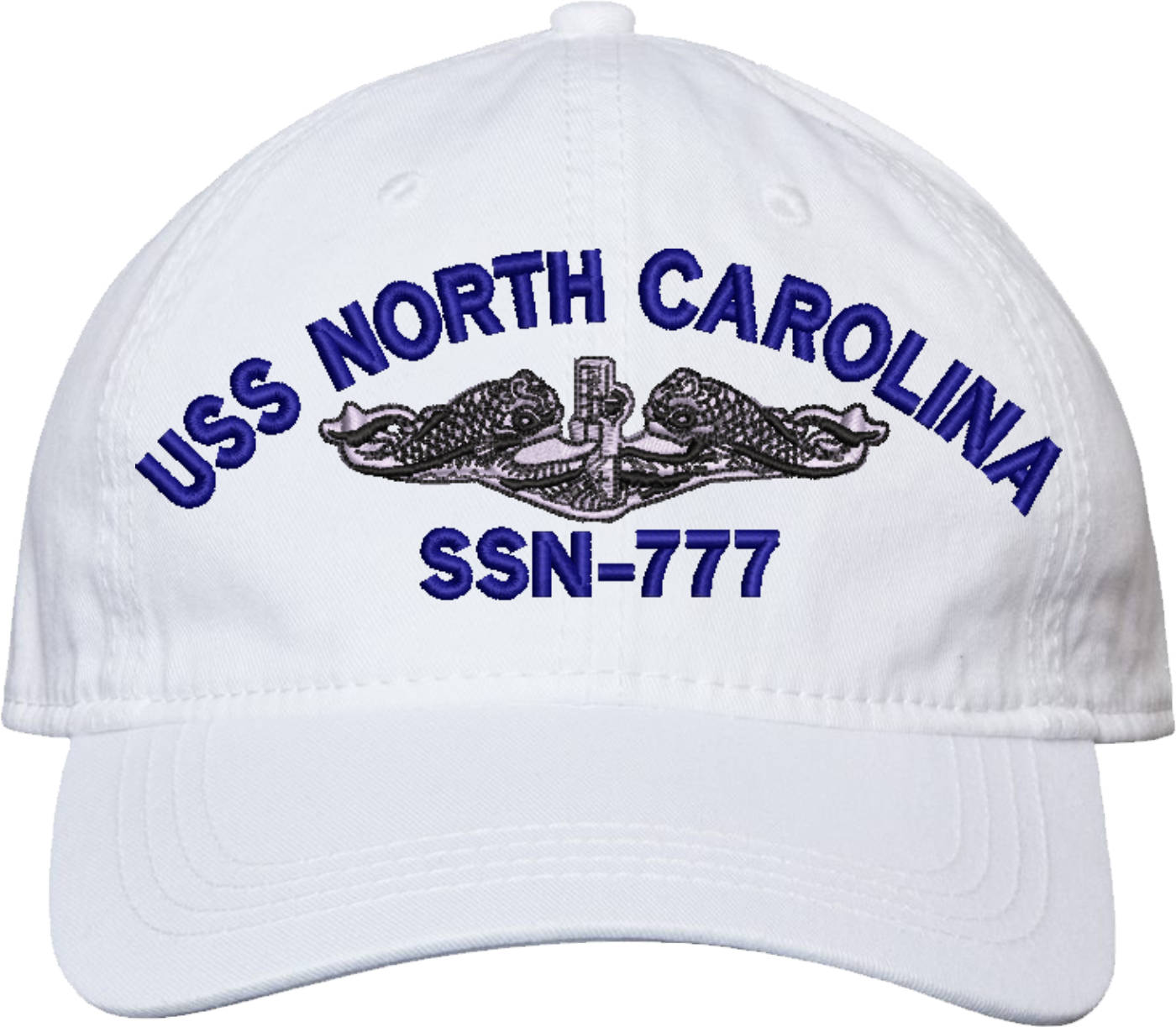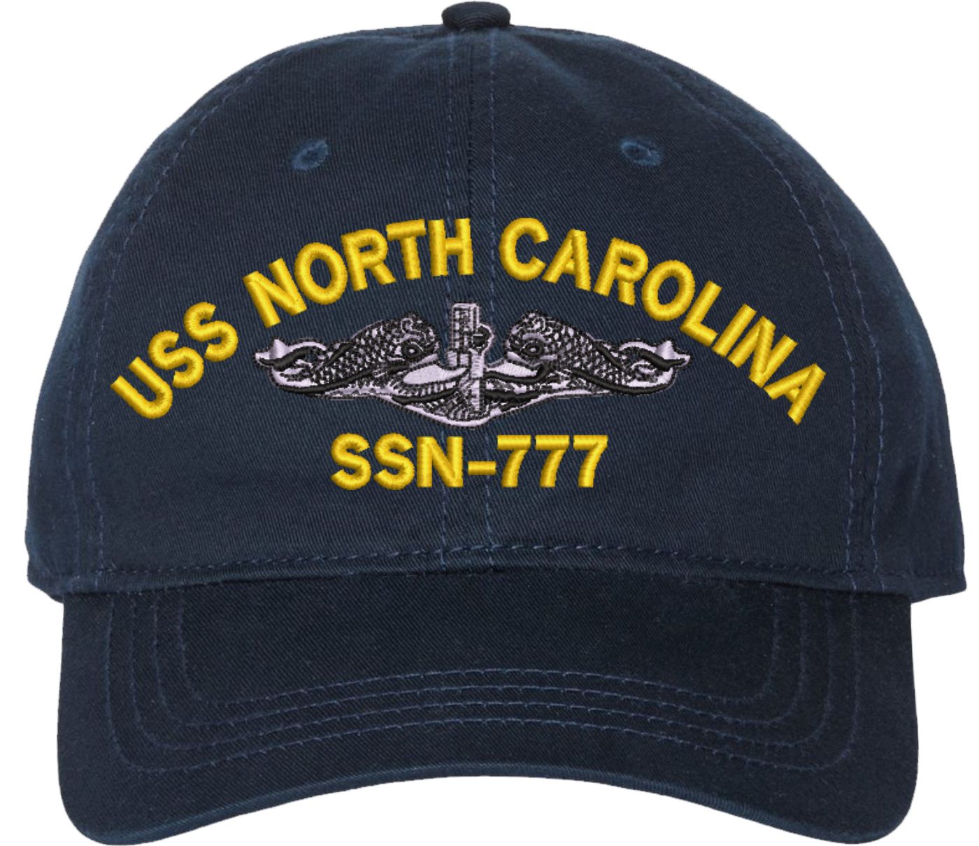 Show your Navy pride with this USS North Carolina SSN-777 with Dolphins Unstructured Dad Cap from MilitaryBest. Crafted from 100% washed chino twill cotton, this six-panel, low-profile cap offers a relaxed and comfortable fit. Featuring high-quality embroidery done in our Scottsboro, Alabama facility, this cap is designed with a pre-curved visor and an adjustable tri-glide buckle closure for a perfect fit. Whether for everyday wear or as a meaningful gift, this cap is a great way to honor your own or a loved one's service.For caps ordered with custom embroidered personalized text please allow an additional 3 to 5 days production time. All custom back text will be embroidered in ALL CAPITAL LETTERS. Caps with back text or eggs are non-returnable unless there is a material defect in the cap.