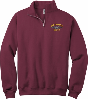 MilitaryBest is proud to offer this USS Olympia SSN-717 with Dolphins Embroidered Quarter-Zip Pullover. This quality shirt is embroidered by our MilitaryBest team in Northeast Alabama.PRODUCT FEATURES