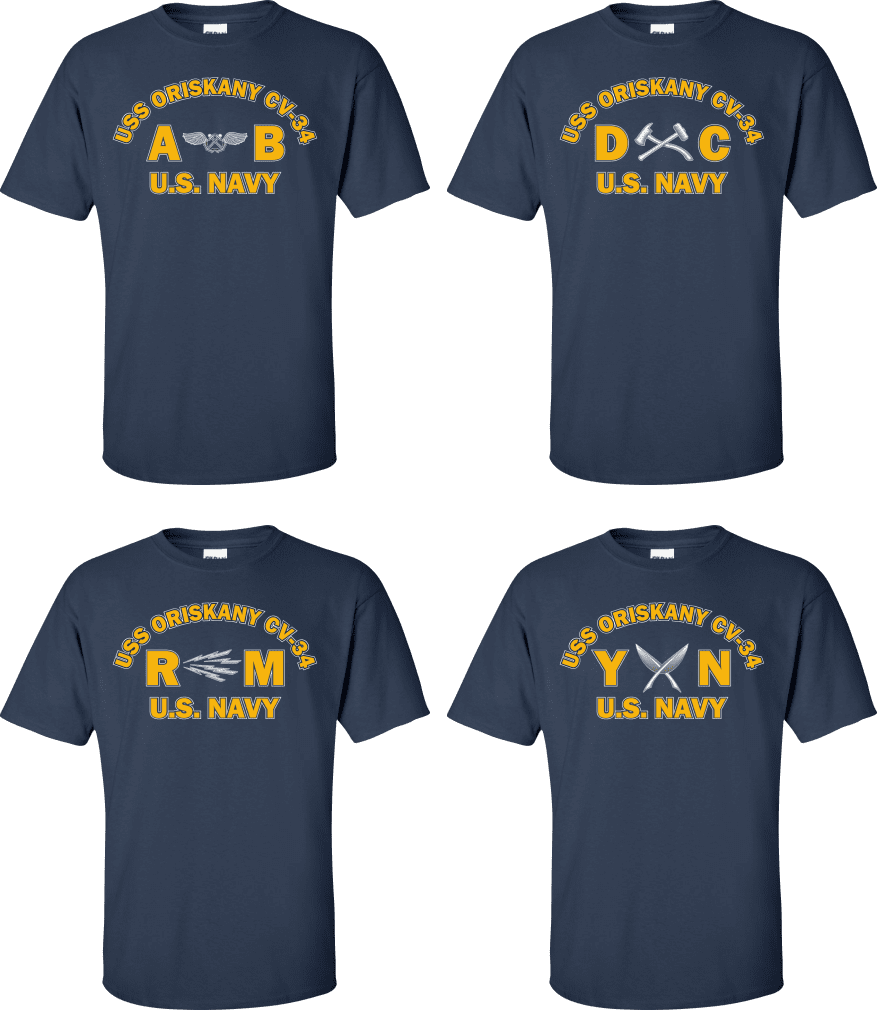 Due to disruptions in supply chains, this design will be embroidered on a Champion, Gildan, Jerzees or comparable brand.Proudly display your ship and rate with our top quality USS ORISKANY CV-34 Rates t-shirts, sweatshirts, and hoodies. These fine U.S. Navy apparel items will make you the envy of your veteran buddies, or will make a fine gift! Our USS ORISKANY CV-34 shirts are proudly printed in the USA!