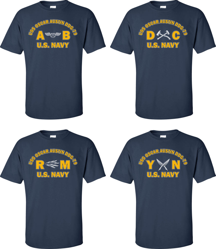 Due to disruptions in supply chains, this design will be embroidered on a Champion, Gildan, Jerzees or comparable brand.Proudly display your ship and rate with our top quality USS OSCAR AUSTIN DDG-79 Rates t-shirts, sweatshirts, and hoodies. These fine U.S. Navy apparel items will make you the envy of your veteran buddies, or will make a fine gift! Our USS OSCAR AUSTIN DDG-79 shirts are proudly printed in the USA!