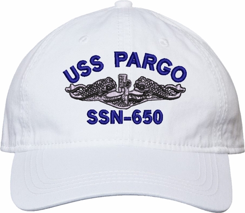 Show your Navy pride with this USS Pargo SSN-650 with Dolphins Unstructured Dad Cap from MilitaryBest. Crafted from 100% washed chino twill cotton, this six-panel, low-profile cap offers a relaxed and comfortable fit. Featuring high-quality embroidery done in our Scottsboro, Alabama facility, this cap is designed with a pre-curved visor and an adjustable tri-glide buckle closure for a perfect fit. Whether for everyday wear or as a meaningful gift, this cap is a great way to honor your own or a loved one's service.For caps ordered with custom embroidered personalized text please allow an additional 3 to 5 days production time. All custom back text will be embroidered in ALL CAPITAL LETTERS. Caps with back text or eggs are non-returnable unless there is a material defect in the cap.