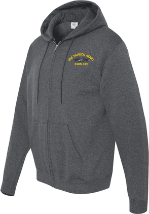 MilitaryBest has expanded its line of apparel with this custom embroidered USS Patrick Henry SSBN-599 G with Dolphins Embroidered Zippered Hoodie. Each Hoodie is direct embroidered onto a Champion brand 9.5 oz 50/50 Cotton Poly blend. This will make an excellent addition to your wardrobe, or a great gift. Your satisfaction is Guaranteed! These quality zippered hoodies are proudly embroidered at our facilities in Scottsboro, AL. Support the Army MWR program by purchasing only from Licensed Vendors.