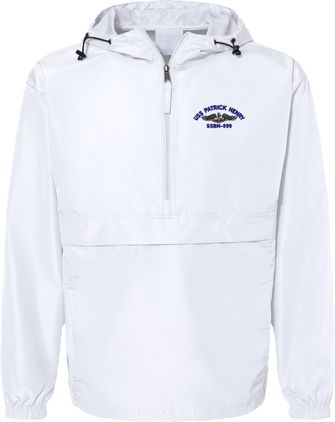 MilitaryBest is proud to offer this quality USS Patrick Henry SSBN-599 with Dolphins Hooded Windbreaker. Also known as an Anorak Jacket, this windbreaker is designed to keep wind and water out. With a design embroidered over the left chest, this windbreaker is embroidered to order at our facilities in Scottsboro, AL.. This windbreaker can be packed into the mesh lined pouch pocket for a more portable method of storage.- 100% Polyester