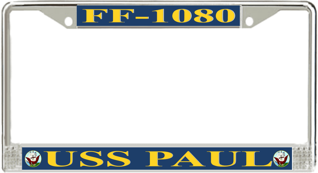 USS Paul FF-1080 License Plate FrameThis USS Paul FF-1080 License Plate Frame is proudly made in the USA at our facilities in Scottsboro, Alabama. Each of our MilitaryBest U.S. Navy Frames feature top and bottom Poly Coated Aluminum strips that are printed using sublimation which gives these quality automobile military frames a beautiful high gloss finish.