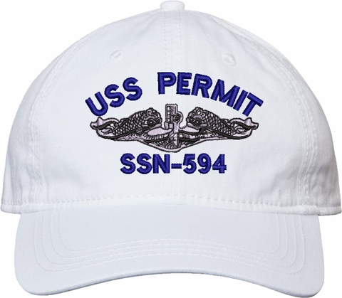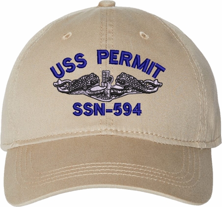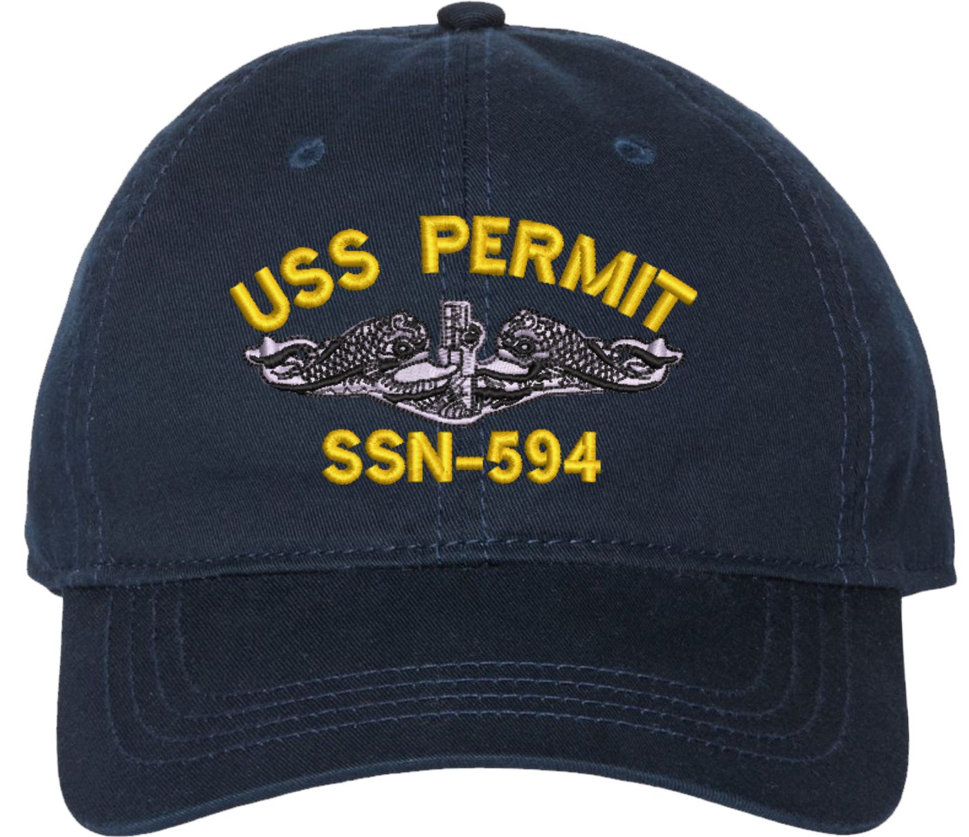 Show your Navy pride with this USS Permit SSN-594 with Dolphins Unstructured Dad Cap from MilitaryBest. Crafted from 100% washed chino twill cotton, this six-panel, low-profile cap offers a relaxed and comfortable fit. Featuring high-quality embroidery done in our Scottsboro, Alabama facility, this cap is designed with a pre-curved visor and an adjustable tri-glide buckle closure for a perfect fit. Whether for everyday wear or as a meaningful gift, this cap is a great way to honor your own or a loved one's service.For caps ordered with custom embroidered personalized text please allow an additional 3 to 5 days production time. All custom back text will be embroidered in ALL CAPITAL LETTERS. Caps with back text or eggs are non-returnable unless there is a material defect in the cap.