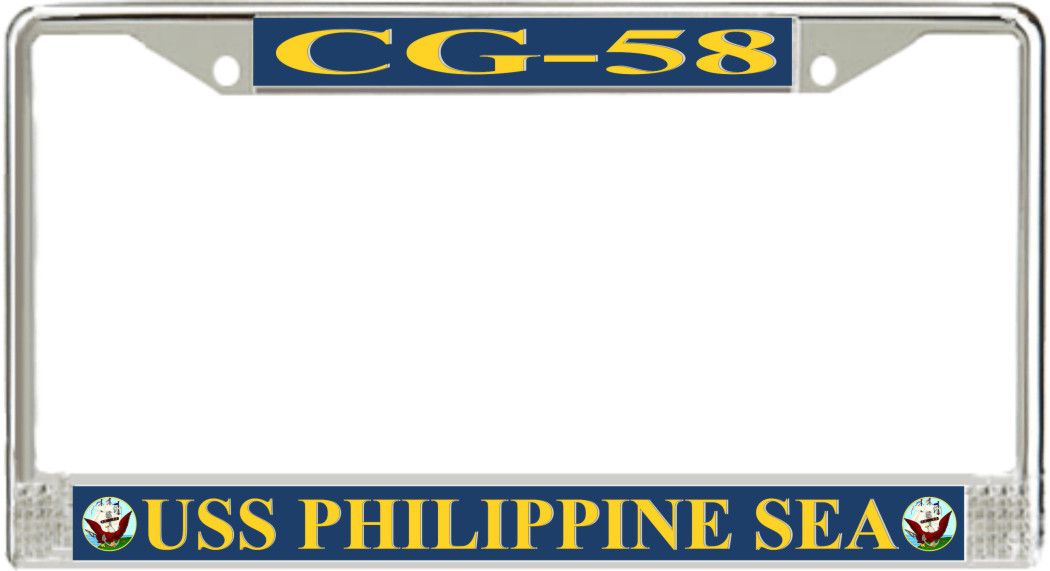 USS Philippine Sea CG-58 License Plate FrameThis USS Philippine Sea CG-58 License Plate Frame is proudly made in the USA at our facilities in Scottsboro, Alabama. Each of our MilitaryBest U.S. Navy Frames feature top and bottom Poly Coated Aluminum strips that are printed using sublimation which gives these quality automobile military frames a beautiful high gloss finish.