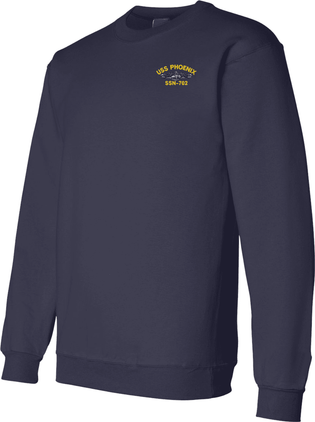 MilitaryBest has expanded its line of apparel with this custom embroidered USS Phoenix SSN-702 with Dolphins Embroidered Sweatshirt. This Sweatshirt will make an excellent addition to your wardrobe, or a great gift. Your satisfaction is Guaranteed! These quality sweatshirts are proudly embroidered at our facilities in Scottsboro, AL. Support the Army MWR program by purchasing only from Licensed Vendors.