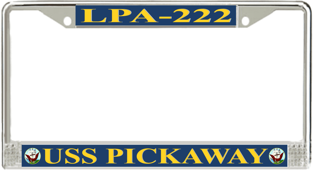 USS Pickaway LPA-222 License Plate frameThis USS Pickaway LPA-222 License Plate frame is proudly made in the USA at our facilities in Scottsboro, Alabama. Each of our MilitaryBest U.S. Navy Frames feature top and bottom Poly Coated Aluminum strips that are printed using sublimation which gives these quality automobile military frames a beautiful high gloss finish.