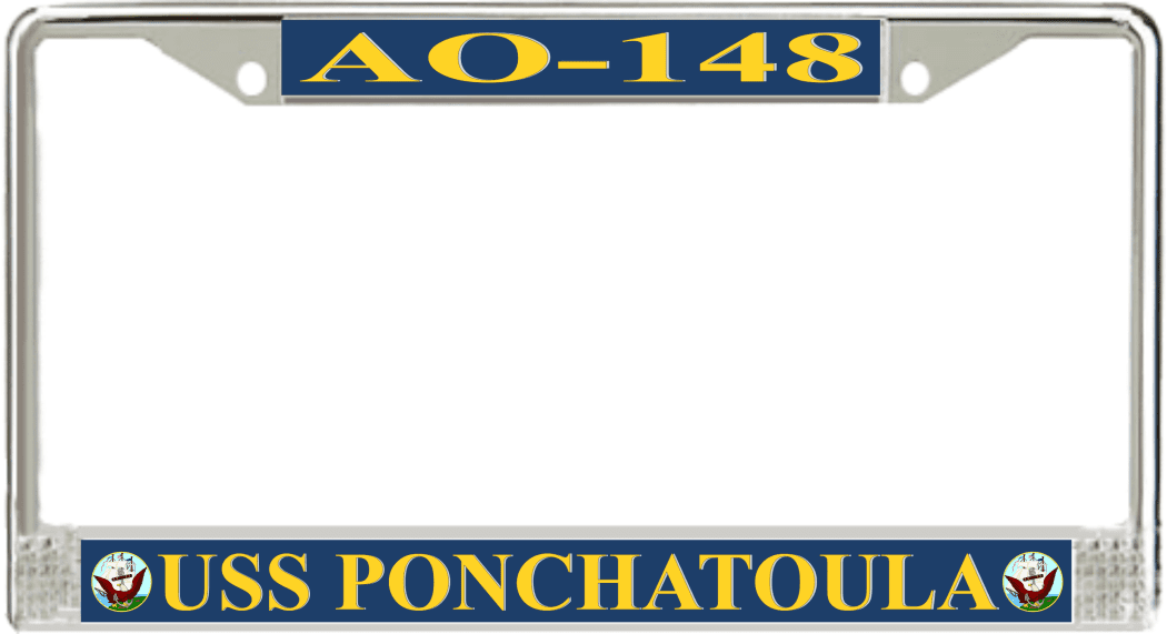 USS Ponchatoula AO-148 License Plate FrameThis USS Ponchatoula AO-148 License Plate Frame is proudly made in the USA at our facilities in Scottsboro, Alabama. Each of our MilitaryBest U.S. Navy Frames feature top and bottom Poly Coated Aluminum strips that are printed using sublimation which gives these quality automobile military frames a beautiful high gloss finish.