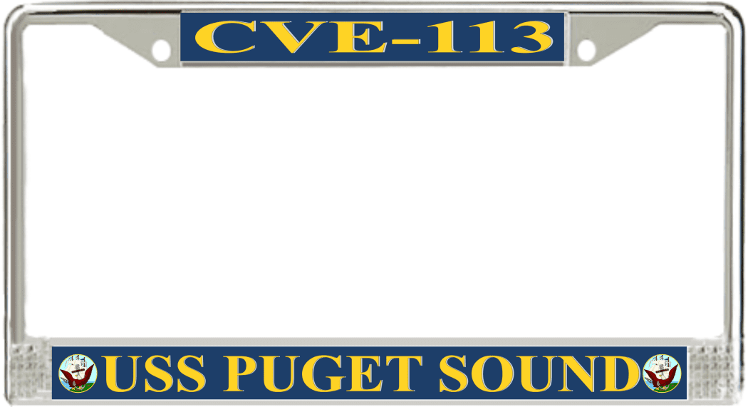 USS Puget Sound CVE-113 License Plate Frame This USS Puget Sound CVE-113 License Plate Frame is proudly made in the USA at our facilities in Scottsboro, Alabama. Each Frame features top and bottom sublimated design strips that are poly coated for a protective gloss finish.