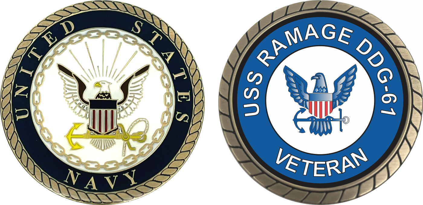 This 1 3/4” USS Ramage DDG-61 Veteran Challenge Coin is proudly offered by MilitaryBest. This Officially Licensed Navy coin has beautiful enamel finish on one side and an organized crisp clean USS Ramage DDG-61 Veteran design on the opposite side.