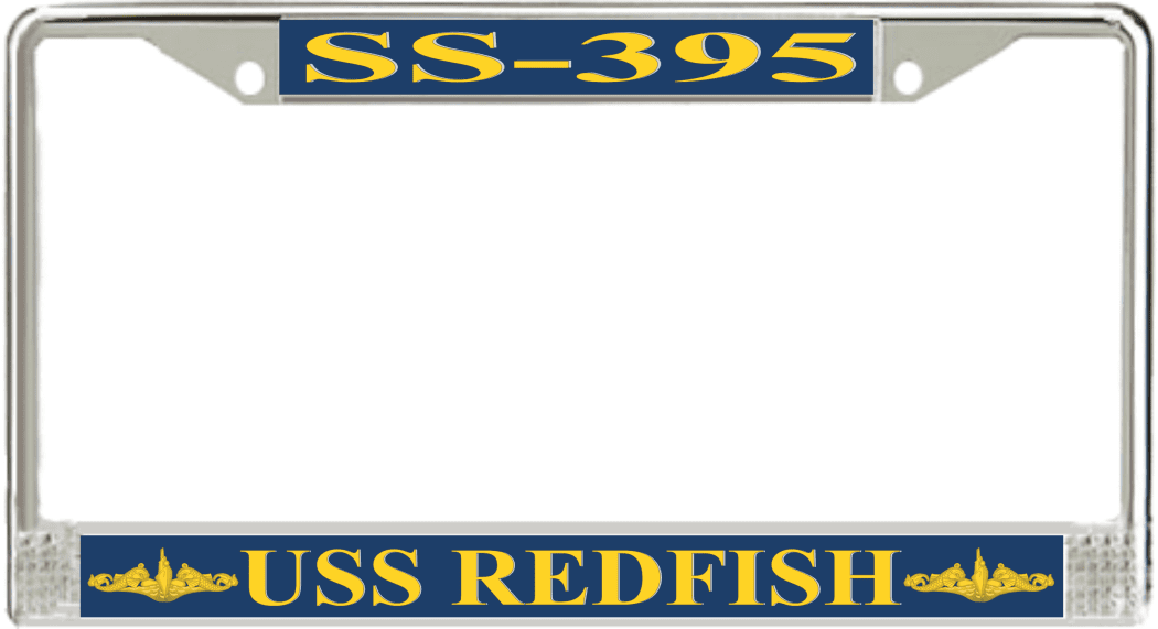 USS Redfish SS-395 License Plate Frame This USS Redfish SS-395 License Plate Frame is proudly made in the USA at our facilities in Scottsboro, Alabama. Each Frame features top and bottom sublimated design strips that are poly coated for a protective gloss finish. Please check your state and local regulations for compatibility of these frames for use on your vehicle.