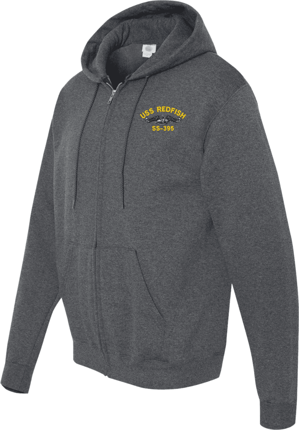 MilitaryBest has expanded its line of apparel with this custom embroidered USS Redfish SS-395 with Dolphins Embroidered Zippered Hoodie. Each Hoodie is direct embroidered onto a Champion brand 9.5 oz 50/50 Cotton Poly blend. This will make an excellent addition to your wardrobe, or a great gift. Your satisfaction is Guaranteed! These quality zippered hoodies are proudly embroidered at our facilities in Scottsboro, AL. Support the Army MWR program by purchasing only from Licensed Vendors.