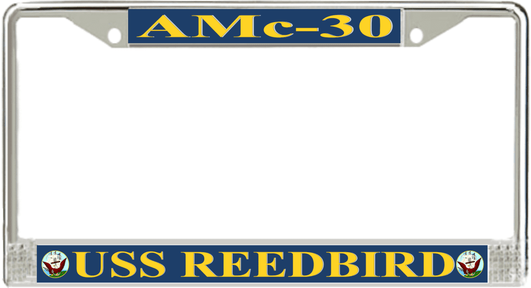 USS Reedbird AMc-30 License Plate FrameThis USS Reedbird AMc-30 License Plate Frame is proudly made in the USA at our facilities in Scottsboro, Alabama. Each of our MilitaryBest U.S. Navy Frames feature top and bottom Poly Coated Aluminum strips that are printed using sublimation which gives these quality automobile military frames a beautiful high gloss finish.