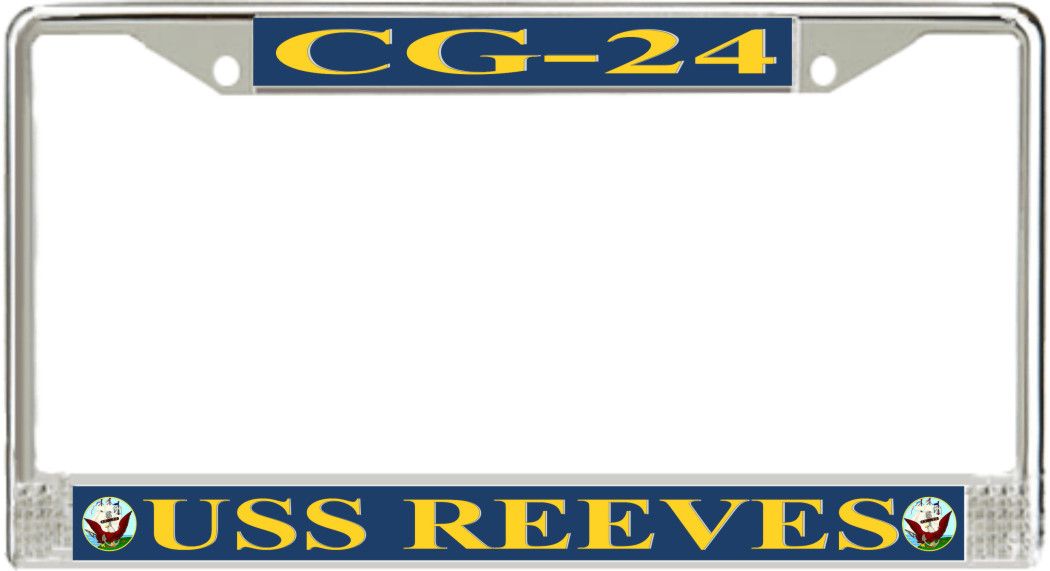 USS Reeves CG-24 License Plate FrameThis USS Reeves CG-24 License Plate Frame is proudly made in the USA at our facilities in Scottsboro, Alabama. Each of our MilitaryBest U.S. Navy Frames feature top and bottom Poly Coated Aluminum strips that are printed using sublimation which gives these quality automobile military frames a beautiful high gloss finish.