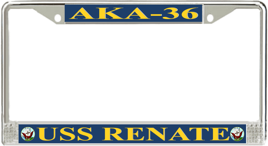 USS Renate AKA-36 License Plate FrameThis USS Renate AKA-36 License Plate Frame is proudly made in the USA at our facilities in Scottsboro, Alabama. Each of our MilitaryBest U.S. Navy Frames feature top and bottom Poly Coated Aluminum strips that are printed using sublimation which gives these quality automobile military frames a beautiful high gloss finish.