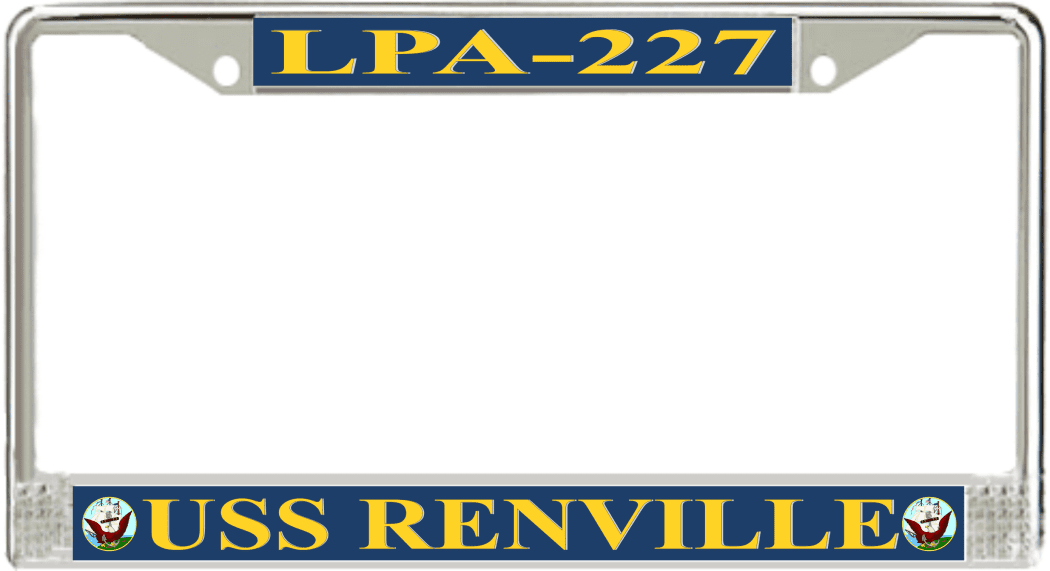 USS Renville LPA-227 License Plate frameThis USS Renville LPA-227 License Plate frame is proudly made in the USA at our facilities in Scottsboro, Alabama. Each of our MilitaryBest U.S. Navy Frames feature top and bottom Poly Coated Aluminum strips that are printed using sublimation which gives these quality automobile military frames a beautiful high gloss finish.